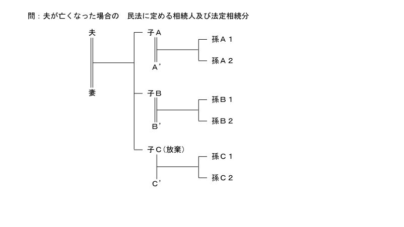 次の図中の 民法に定める相続人とそれぞれの法定相続分 を求めなさい。
